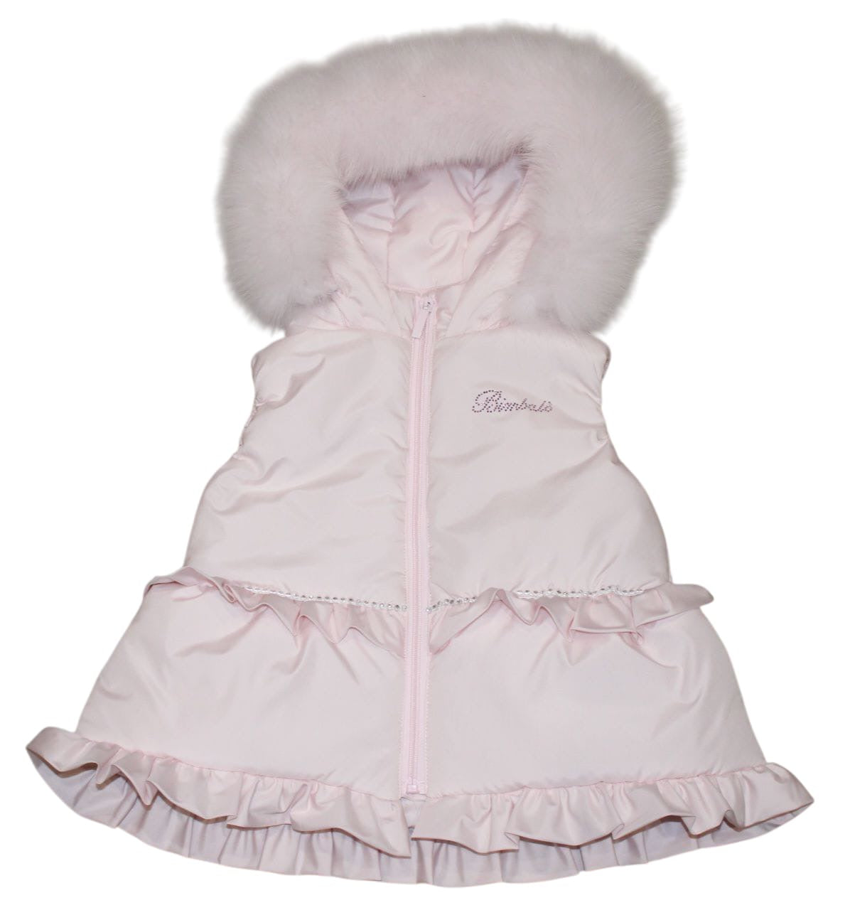 Girl’s BIMBALÒ Pink Gilet With Fur Hood And Dimonte Detail