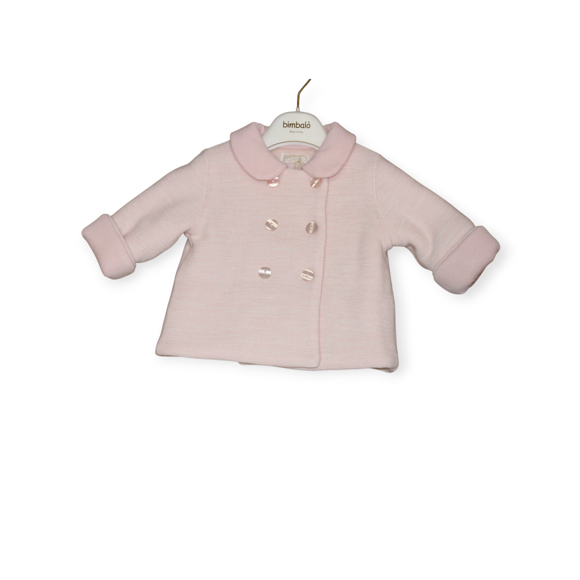 Crafted from soft, warm materials, the Bimbalo Knitted Coat and Hat set is the perfect addition for any stylish little one. Adorned with six delicate buttons, this pink coat exudes elegance and charm. Bundle up in the matching hat to stay cozy and chic all day.