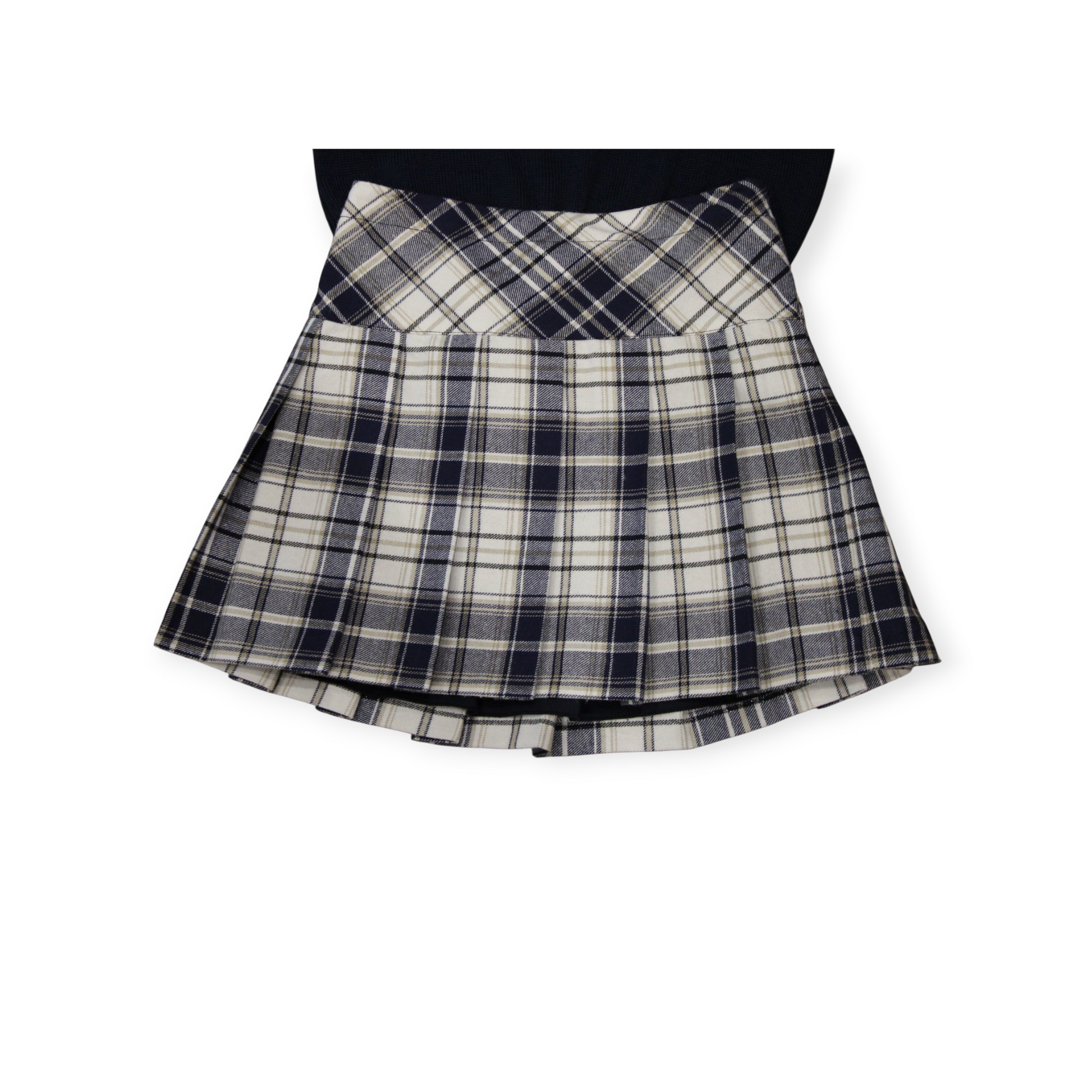 Beautiful bimbalo girls cream navy and beige pleated skirt with navy jumper with handbag design on the front to match skirt
