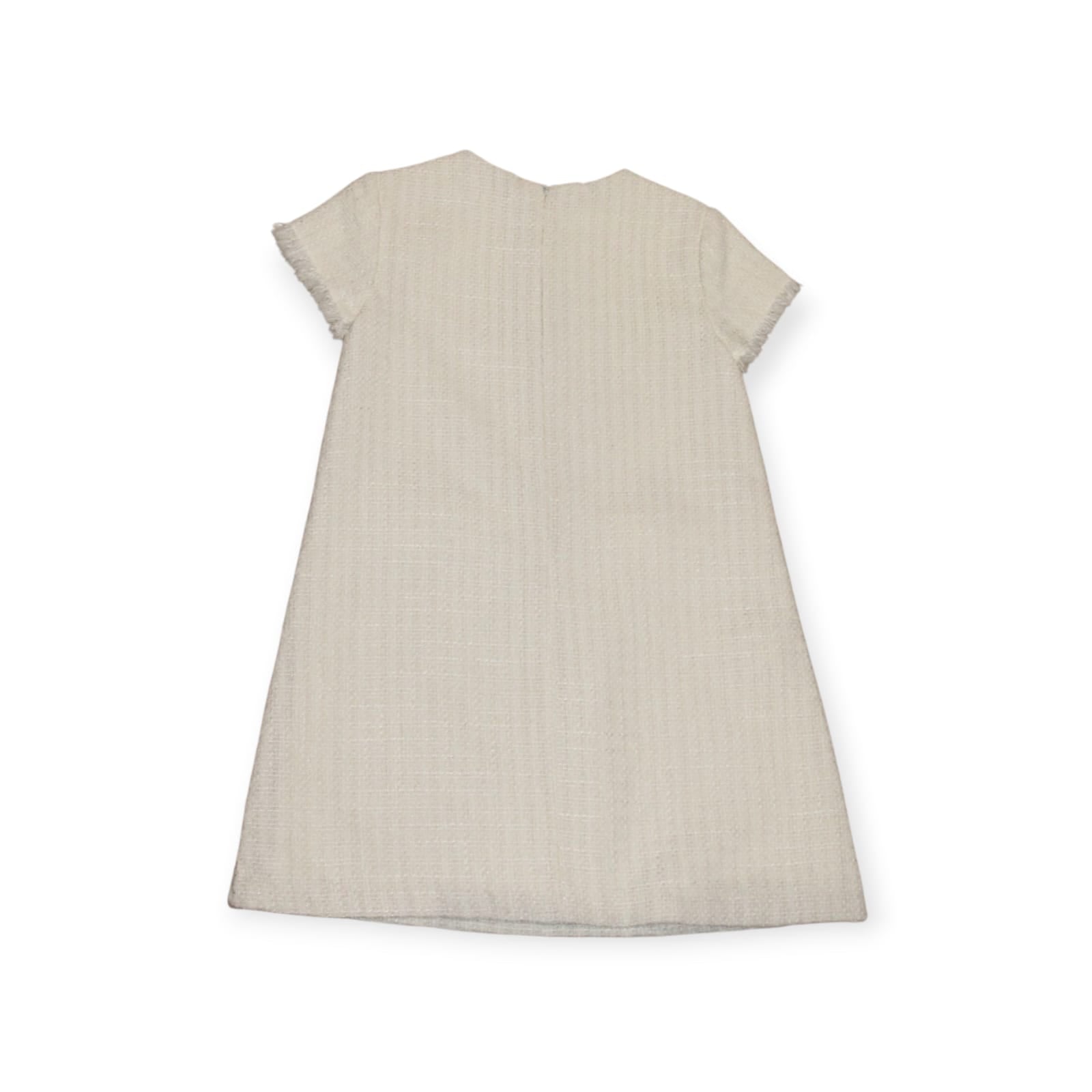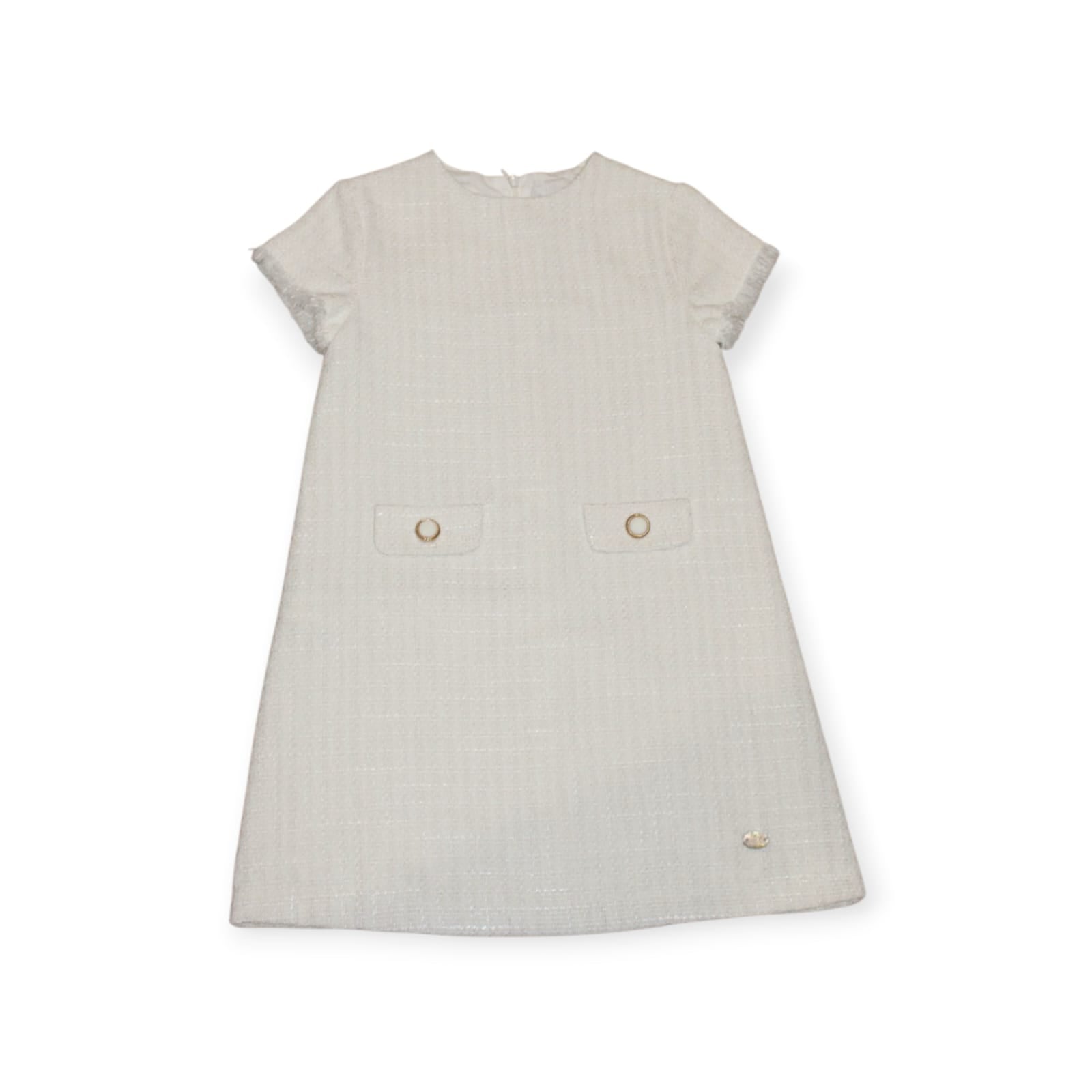 Girls Cream Tweed Dress With Gold And Cream Buttons