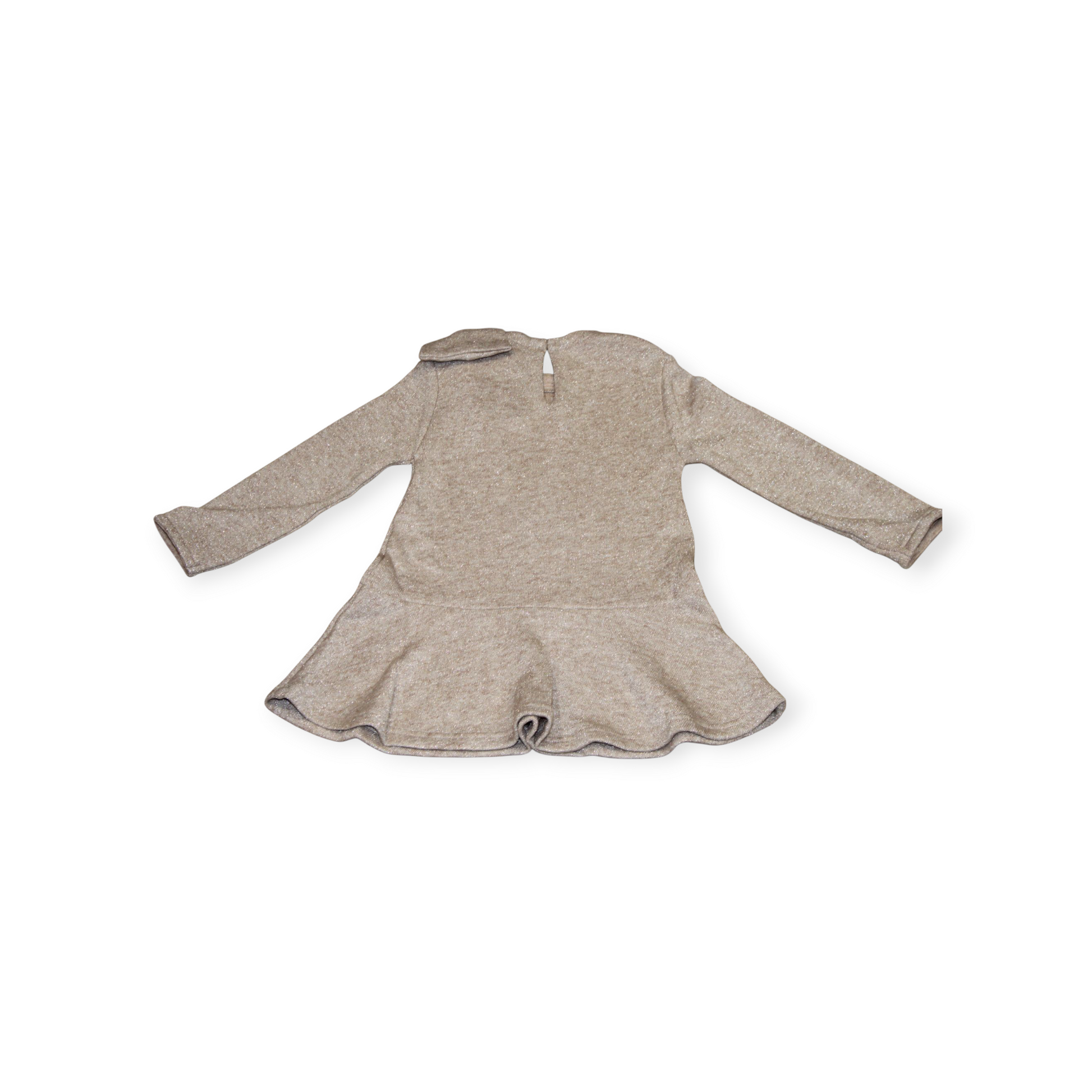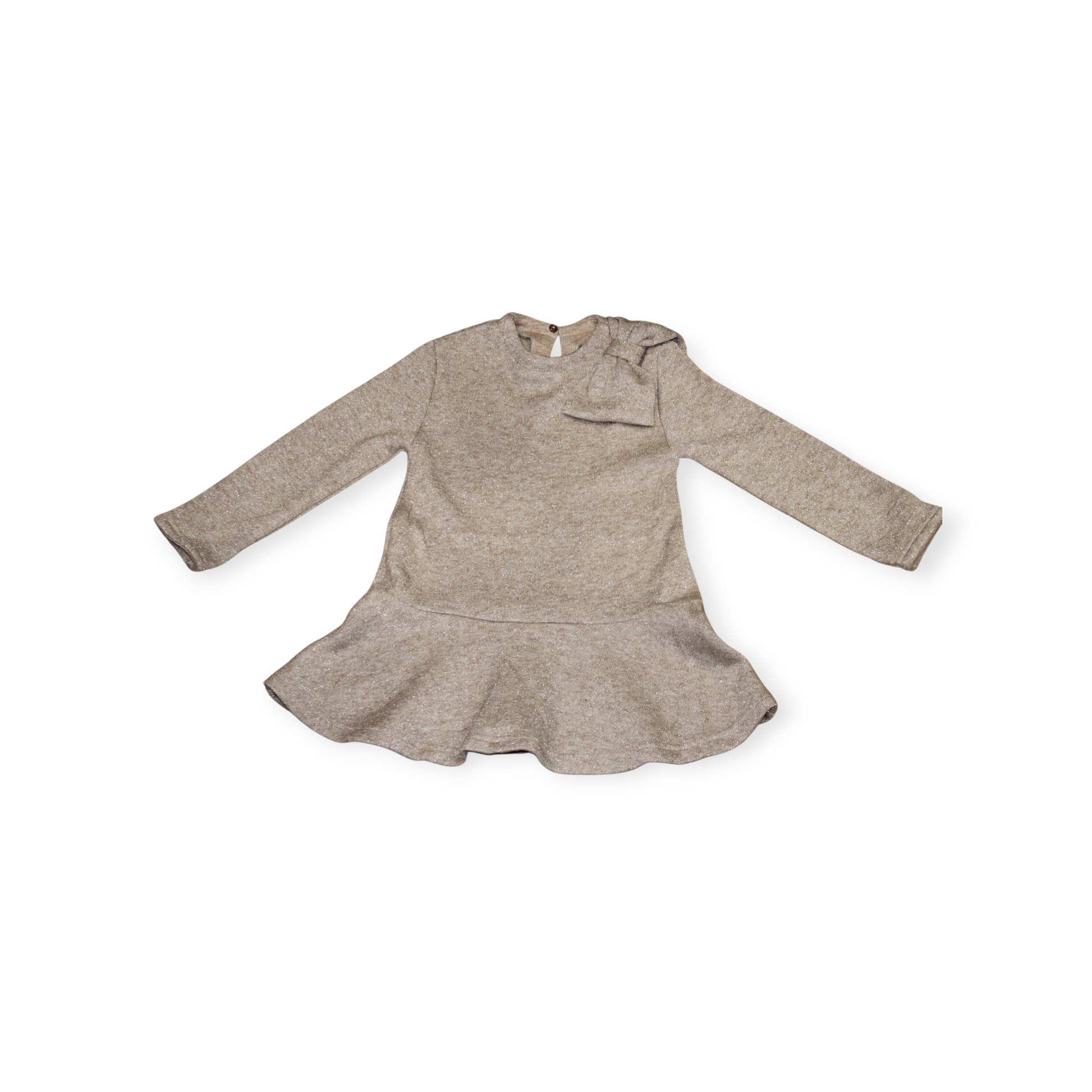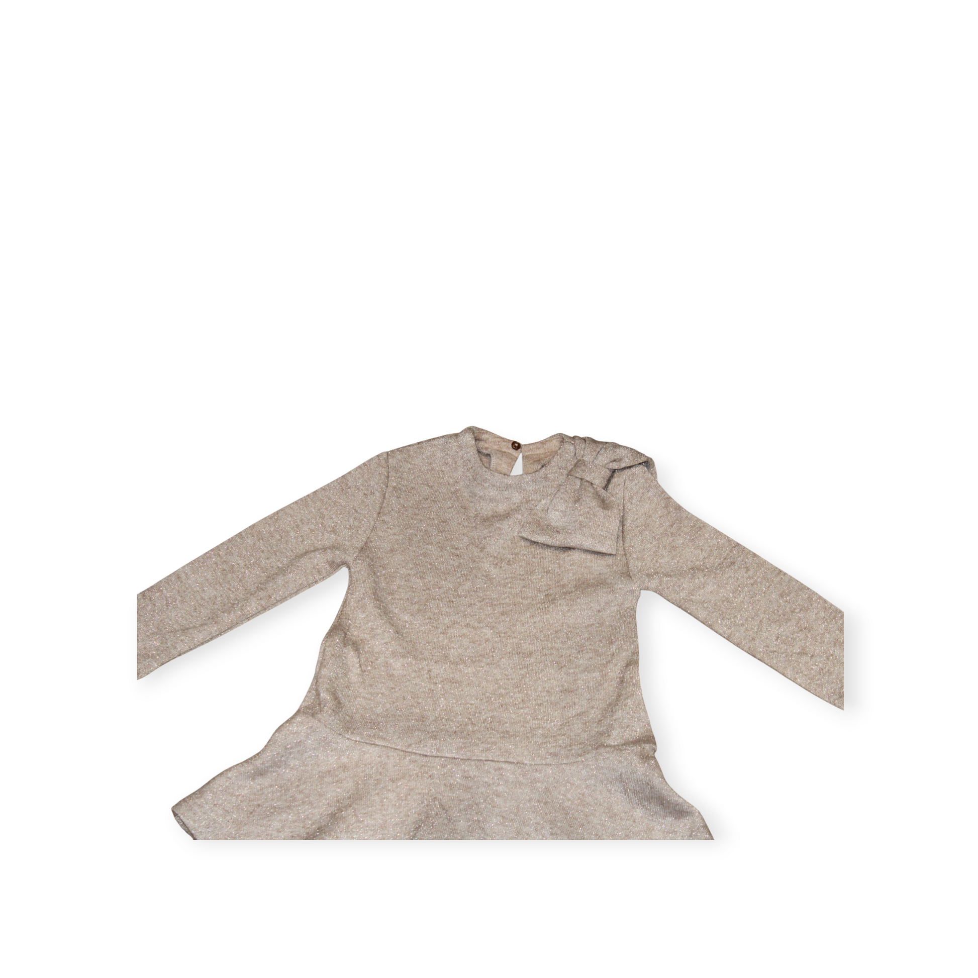 Mayoral beige dress with glitter fleck and bow detail on left shoulder