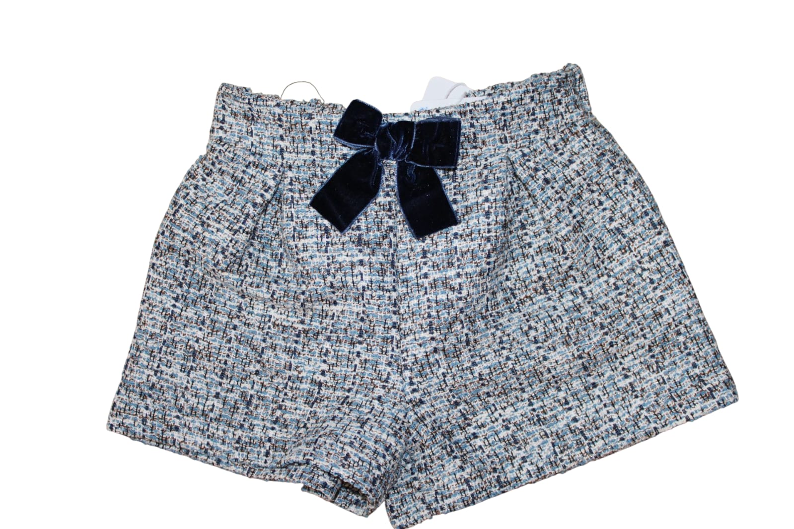 Girls Mayoral Long Arm Top And Blue Tweed Shorts