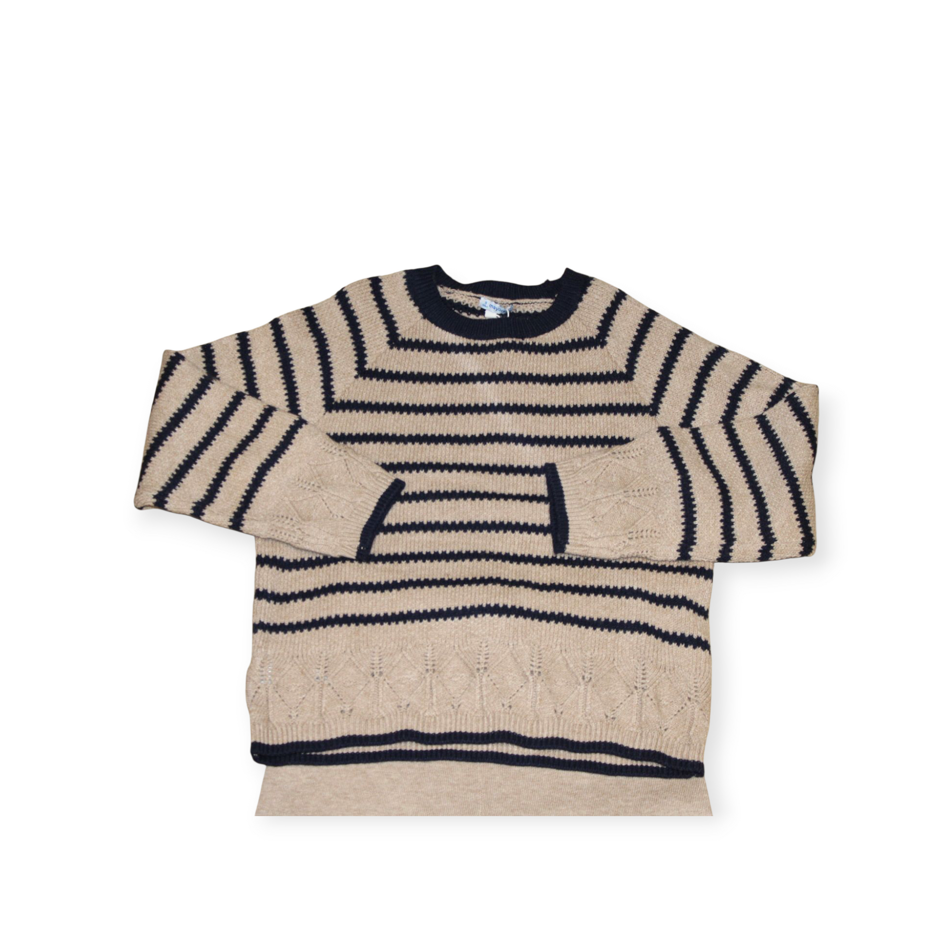 Girls mayoral beige and navy lounge wear set with wide leg bottom and jumper with navy stripe