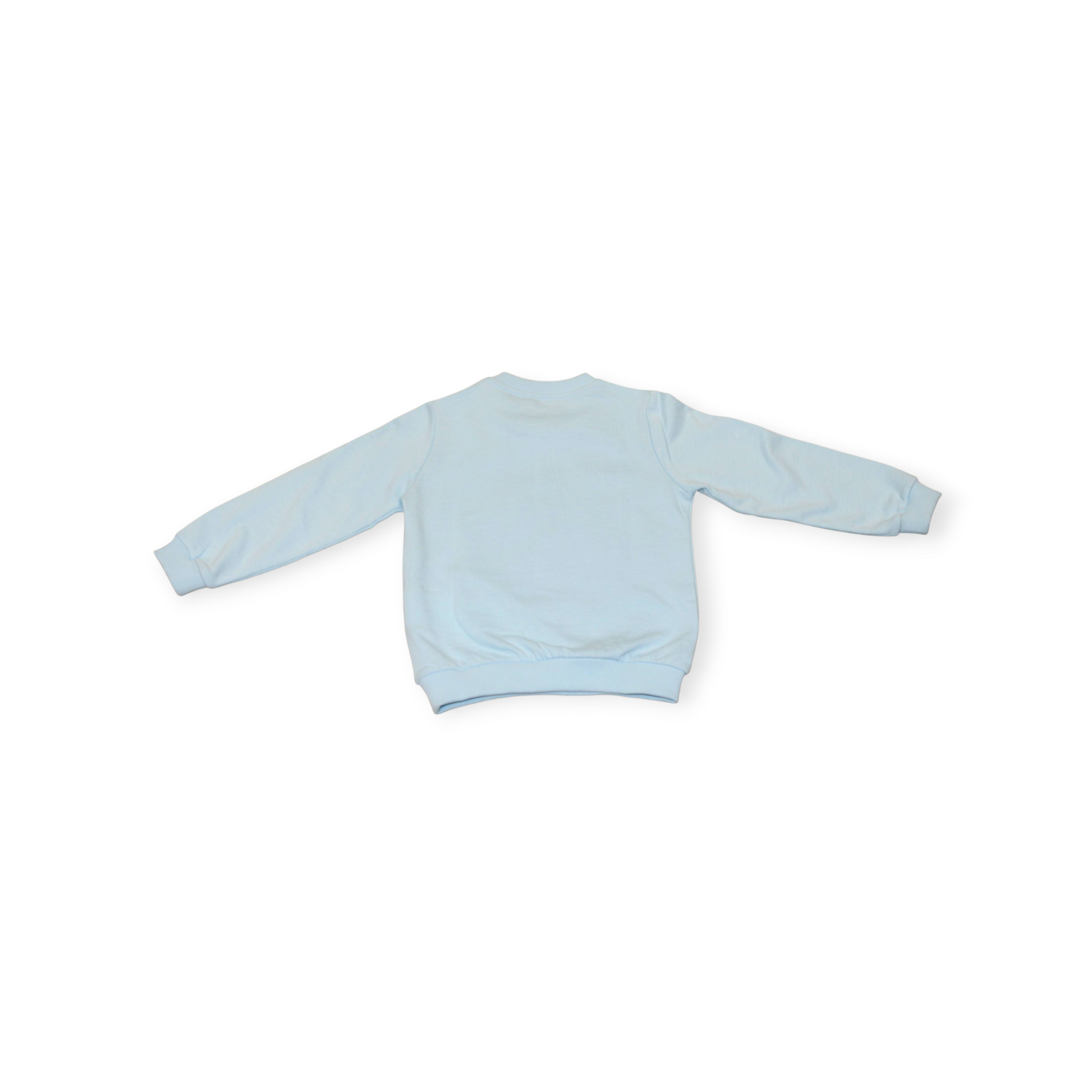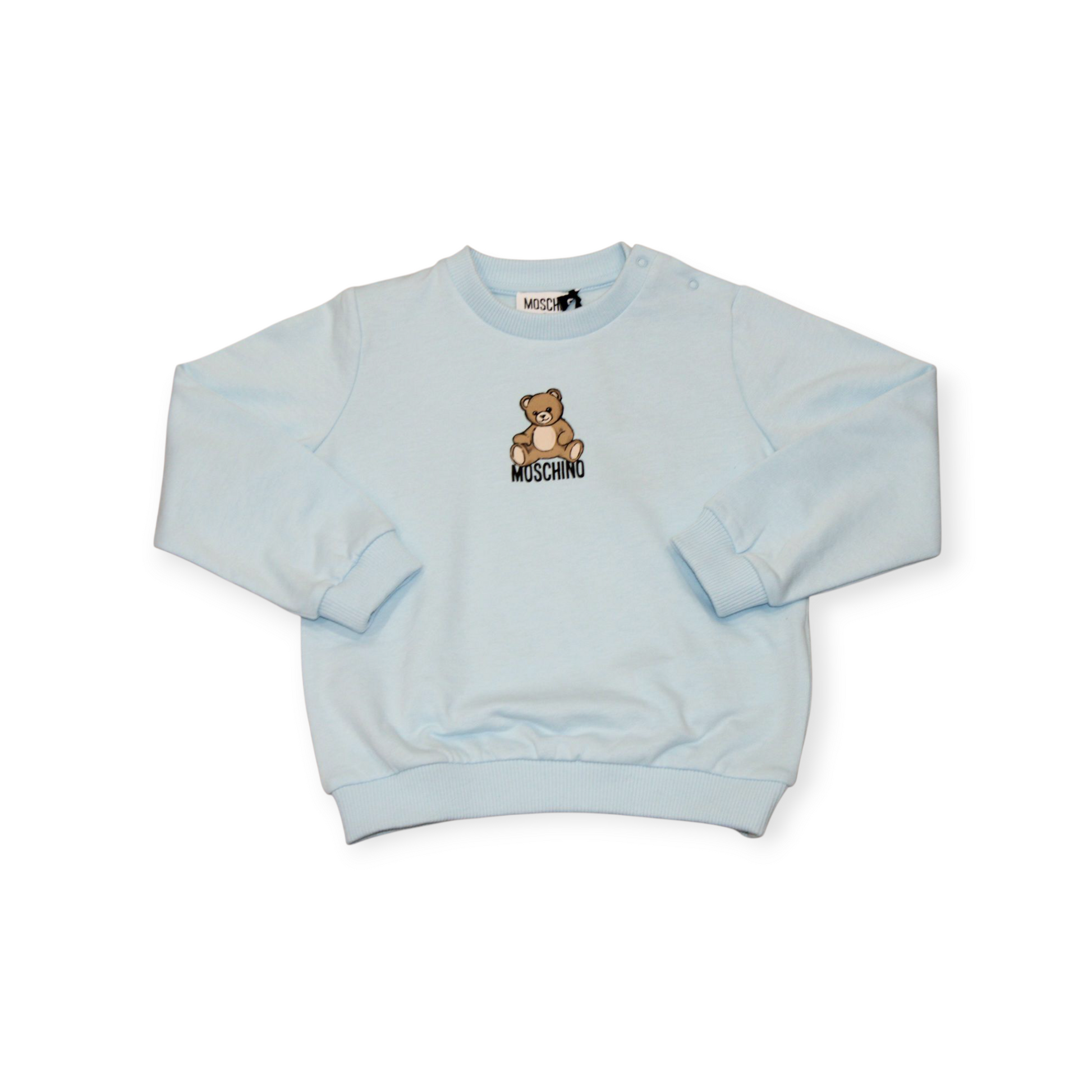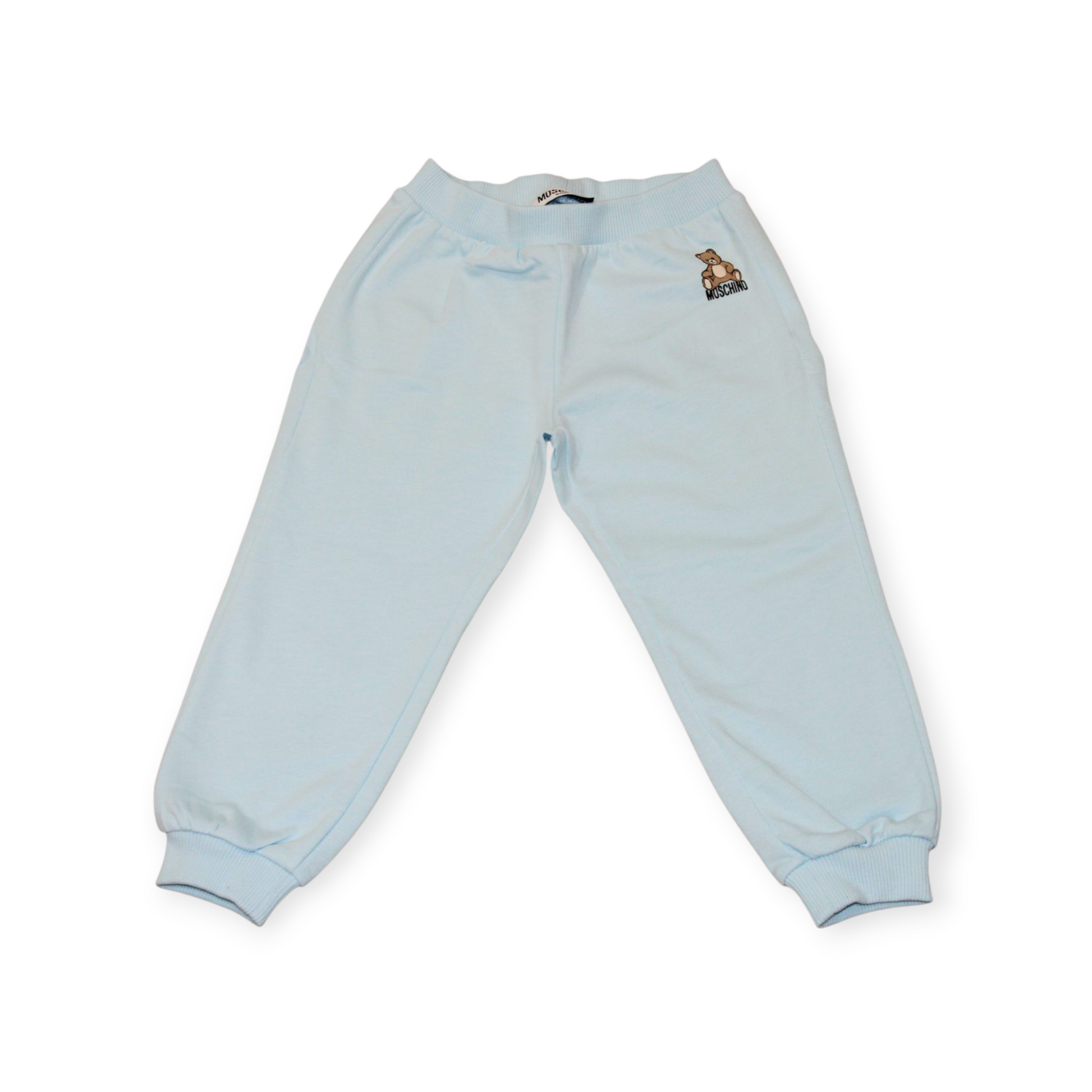 Introducing our Boys' Pale Blue MOSCHINO Tracksuit, featuring a playful Teddy bear design. Made with high-quality material, this track suit is both stylish and comfortable. Perfect for active boys, it's the ideal choice for both playtime and sports. Upgrade your child's wardrobe with this must-have piece from MOSCHINO.