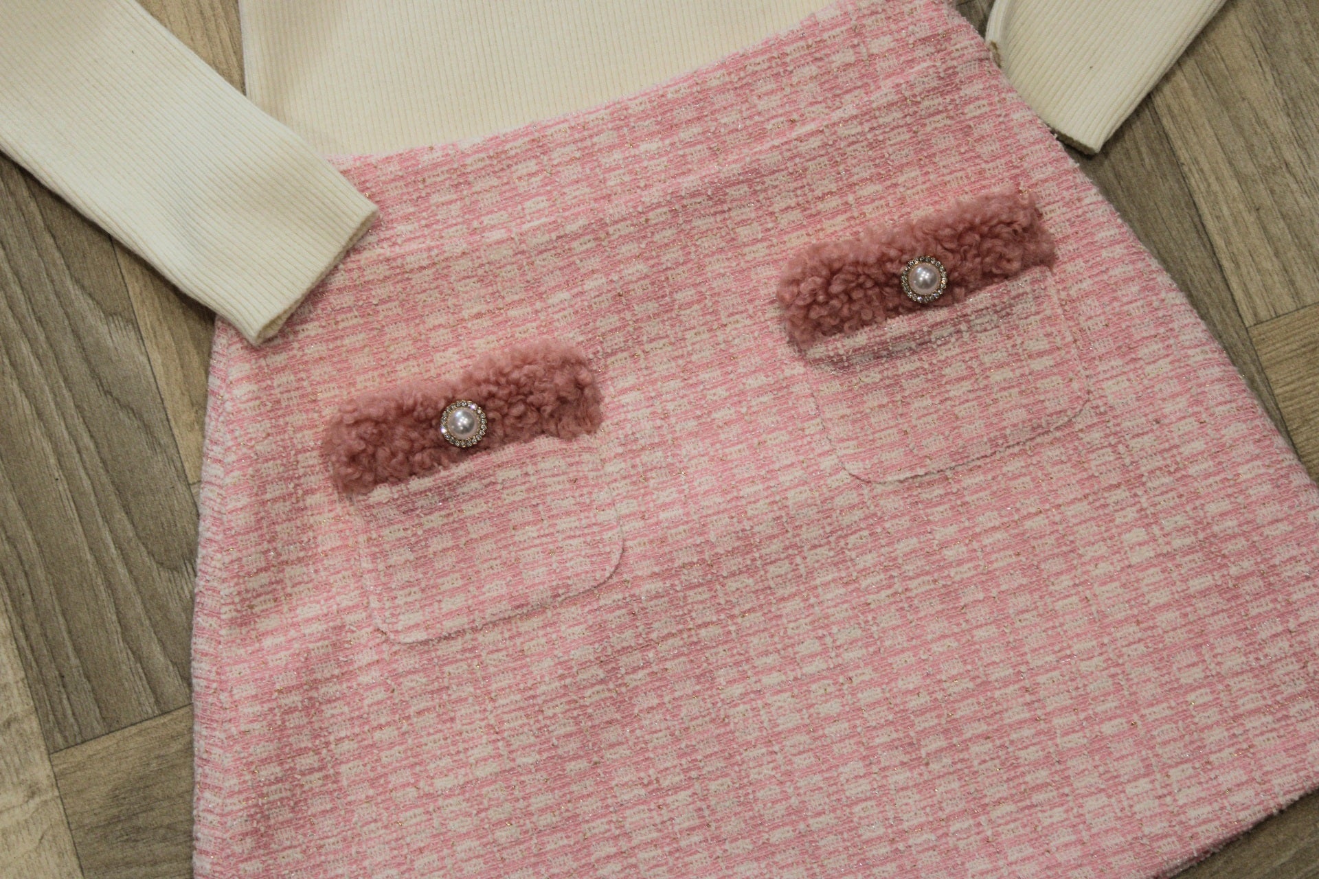 CREAM TOP & PINK TWEED SKIRT SET - PATACHOU