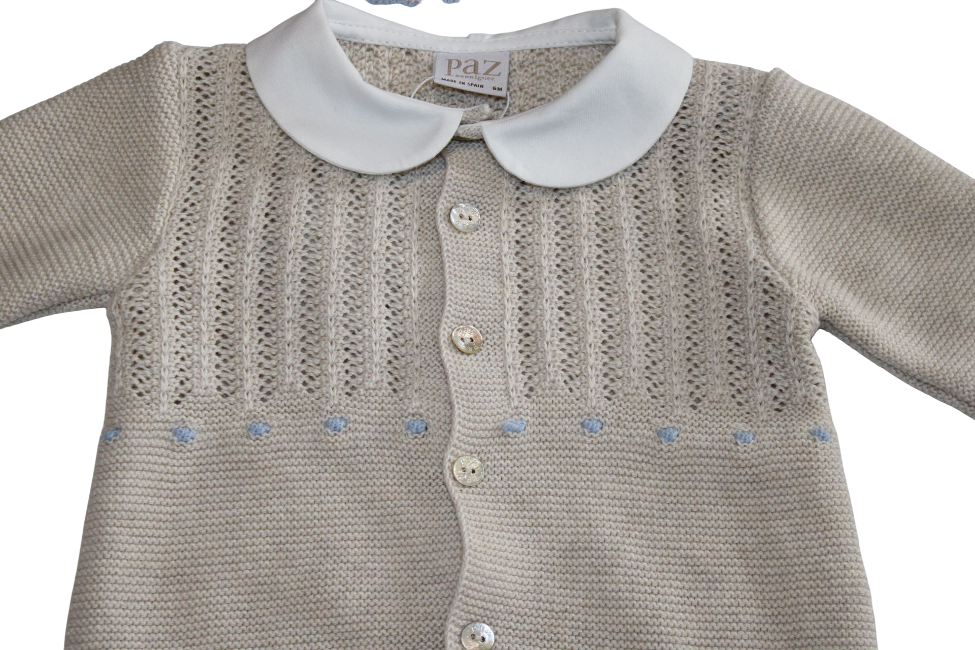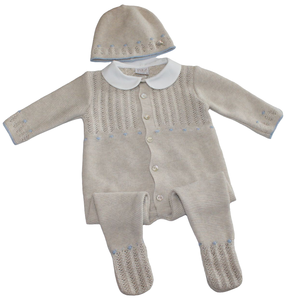 All in one beige paz Rodriguez with blue dot detail and hat