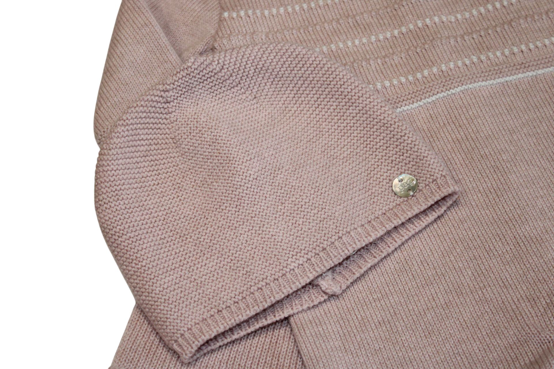 Pink knitted all in 1 set with shawl and hat cream dot detail