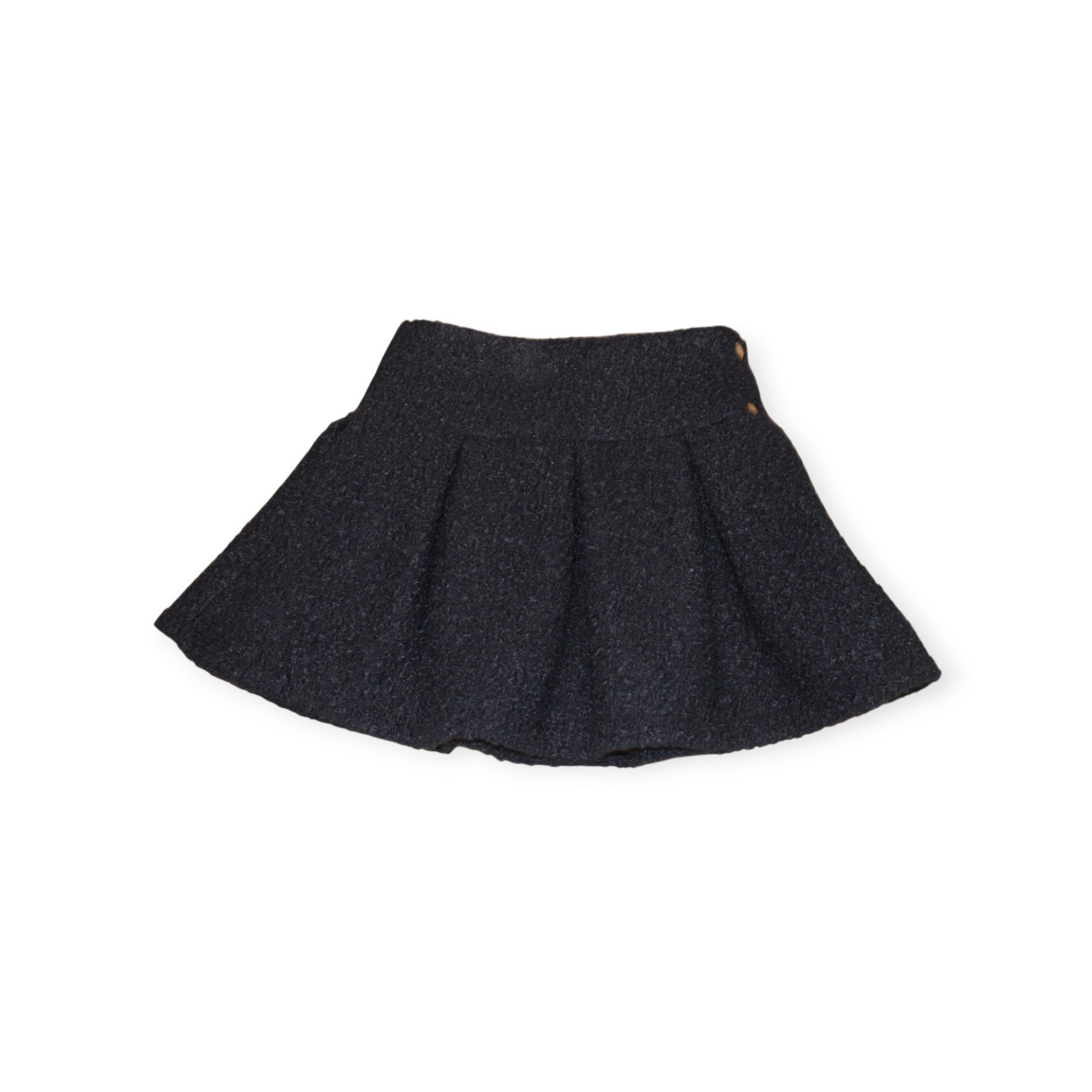 Girls patachou skirt set with white top with navy bow detail and navy skirt with 2 gold Buttons on hip