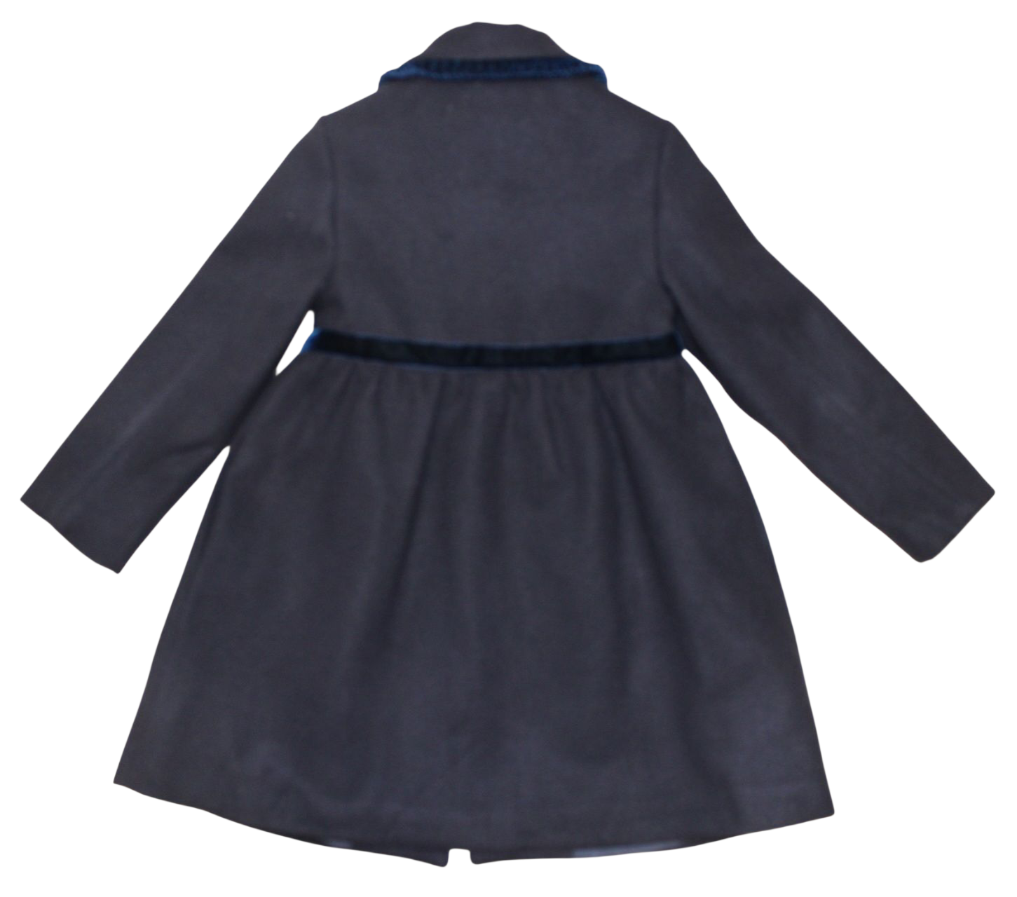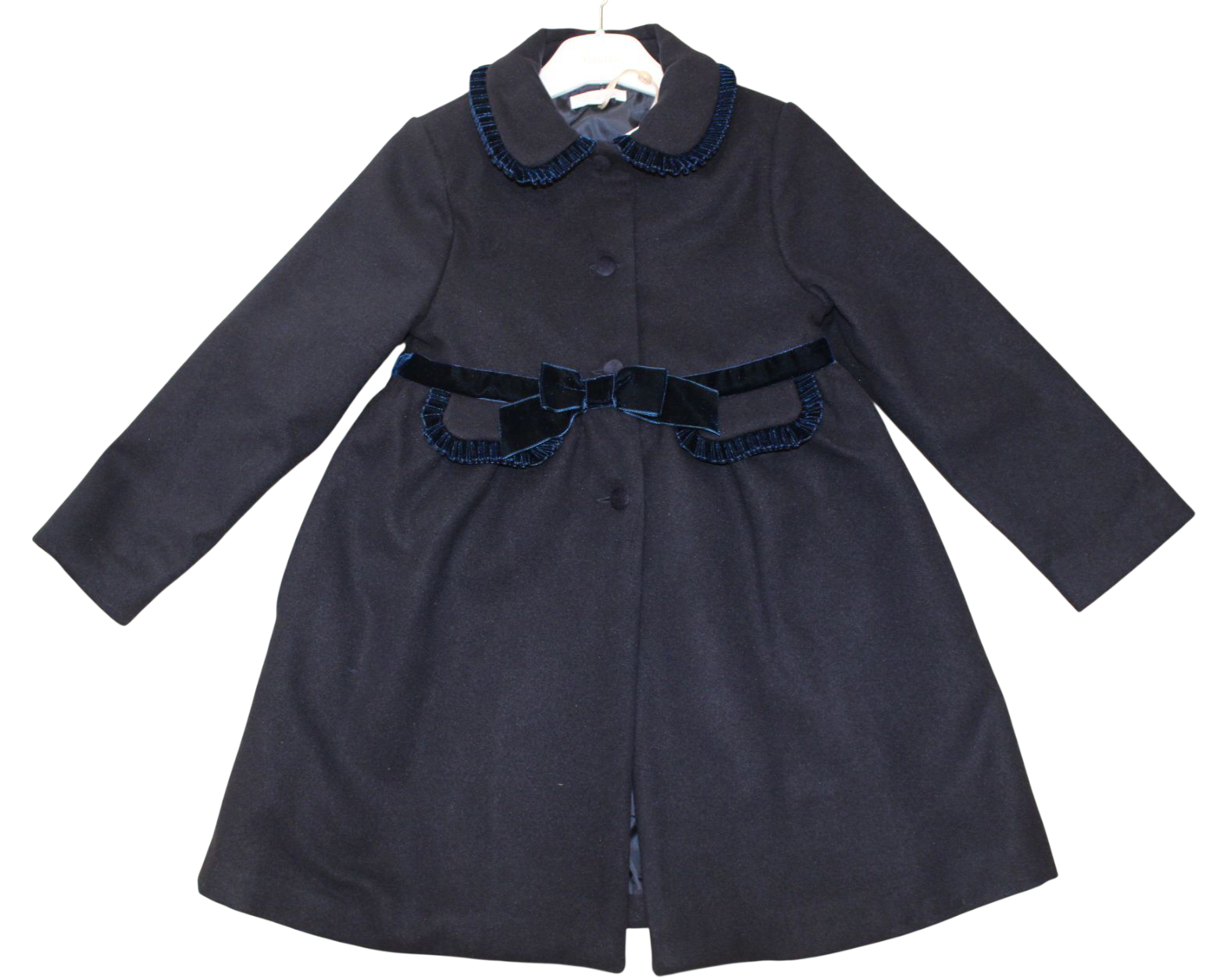 Navy patachou girls traditional coat with velvet bow and velvet trim on collar and pockets