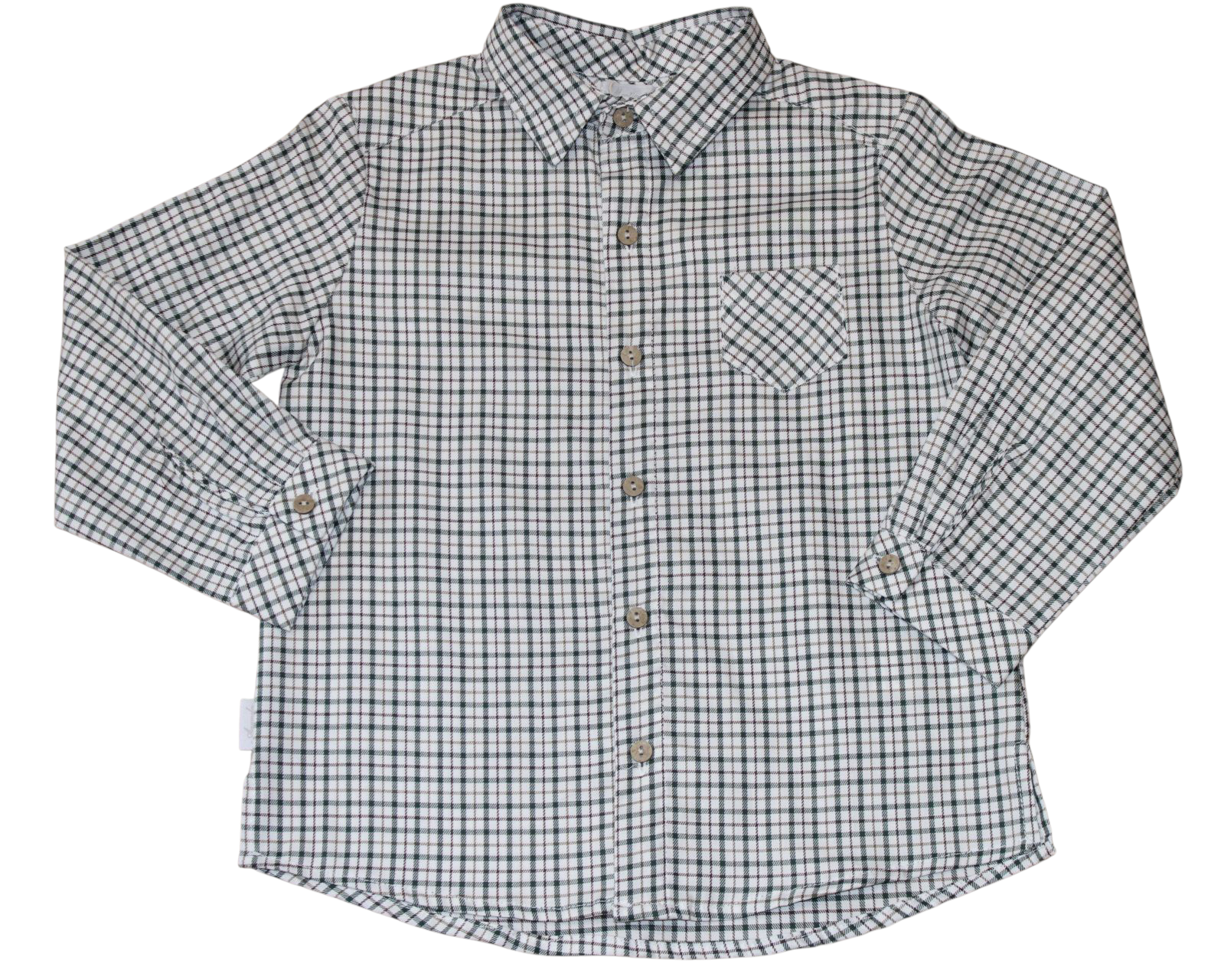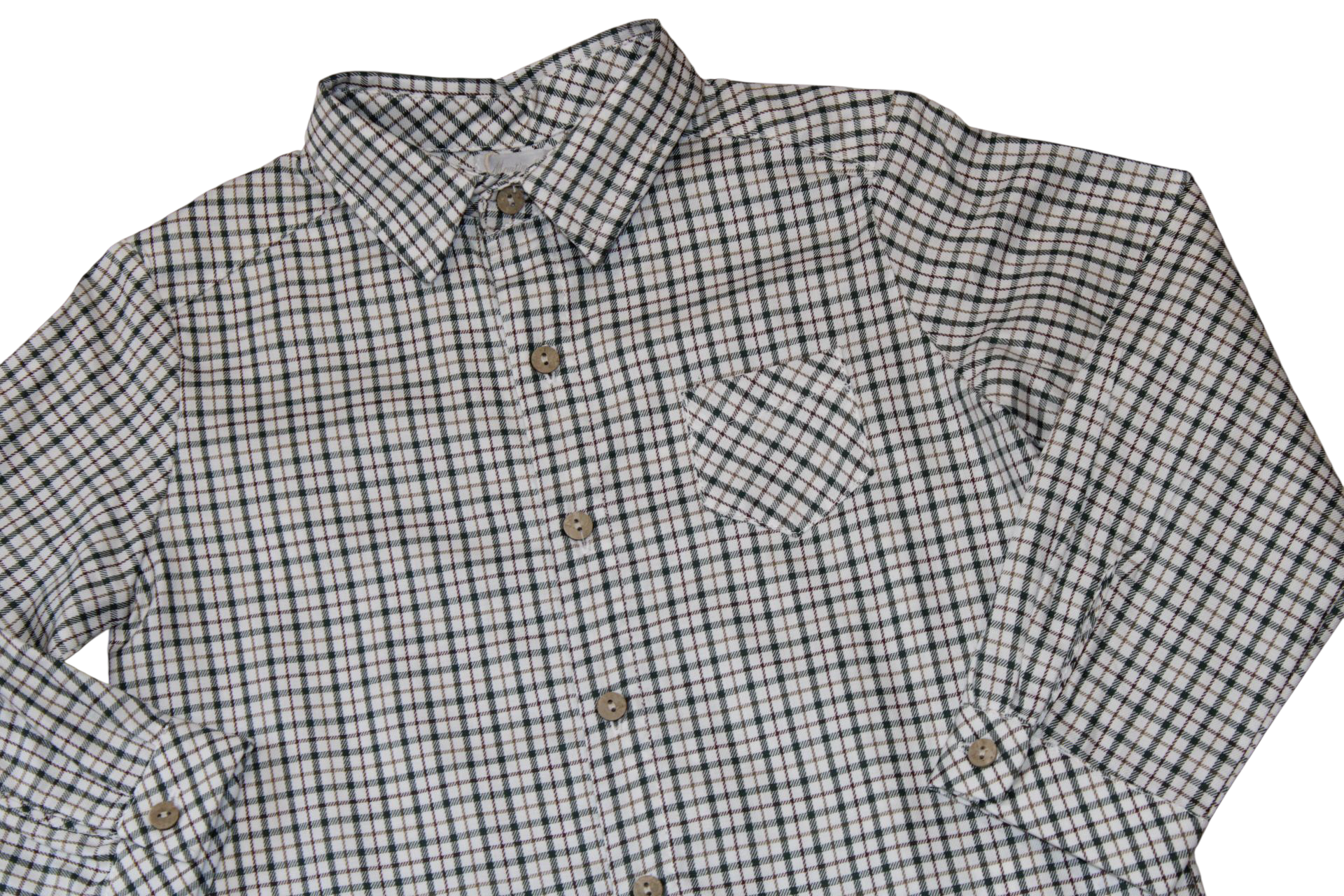 Boys 3 peice Set Including beige cords checked Shirt And Jumper with Pattern And 2 Wooden Button